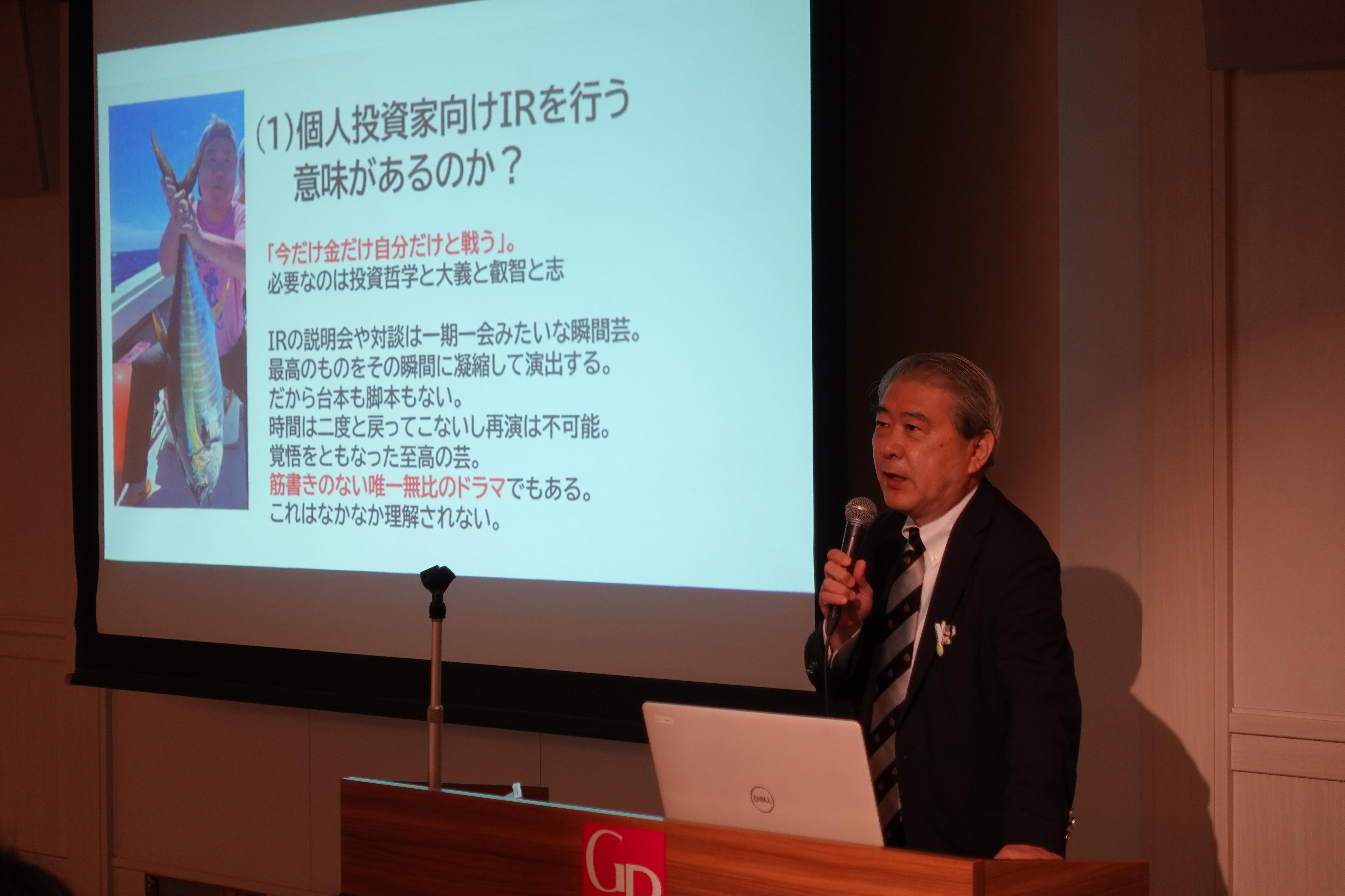 【IR事例研究会・IRセミナー】 場 所:名古屋ガーデンパレス 2階「桜」 出席者:47社 75名 内 容: IR事例研究会では、日本空調サービス株式会社様に自社のIR活動事例を紹介していただき、 IRセミナーでは兜町カタリストの櫻井英明様にご講演いただきました。会社概要や業績概要はもとより、登壇企業様のIR体制とミッション、課題解決に向けた取組みについてのご講演を参加者の皆さまは興味深く聞いていらっしゃいました。 また、IRセミナーでは、個人投資家を長年見続けてきた講師による個人投資家の特性を踏まえた効果的なIRについて学びを得る良い機会となりました。
